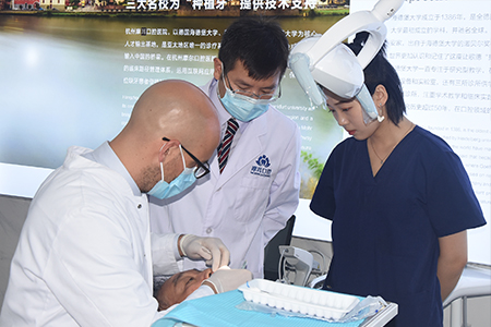 冯观保与美国哥伦比亚大学牙医学院副院长王大源、南京大学种植科主任童昕教授学习交流时合影